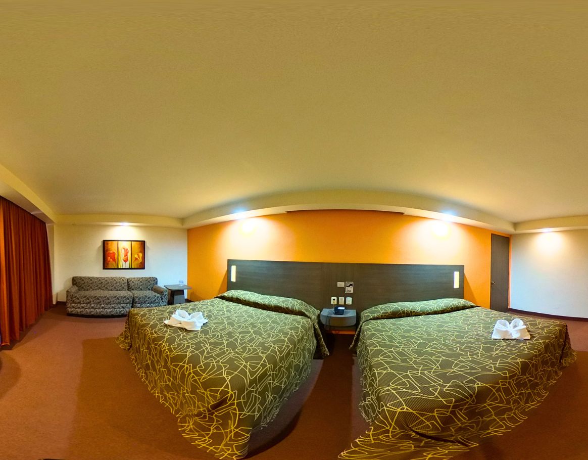 Esta habitación cuenta con 2 camas king size, TV de pantalla plana con canales premium, DVD, Wi-Fi, baño completo, amenities, secadora de cabello, toallas, servicio a la habitación, cambio de sábanas todos los días, estacionamiento privado con valet parking; además de los servicios básicos. *No se aceptan mascotas. *Prohibido fumar en la habitación.